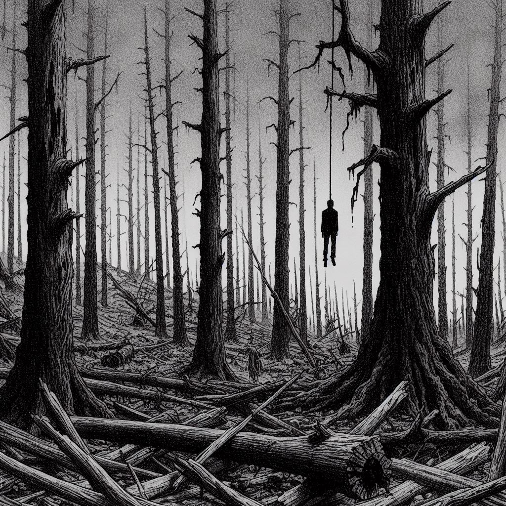 As he incredulously approached this unlucky tree, he heard his footsteps echoing far into the forest. The echo was very loud, unrealistically far-reaching. It made his throat dry with fear.